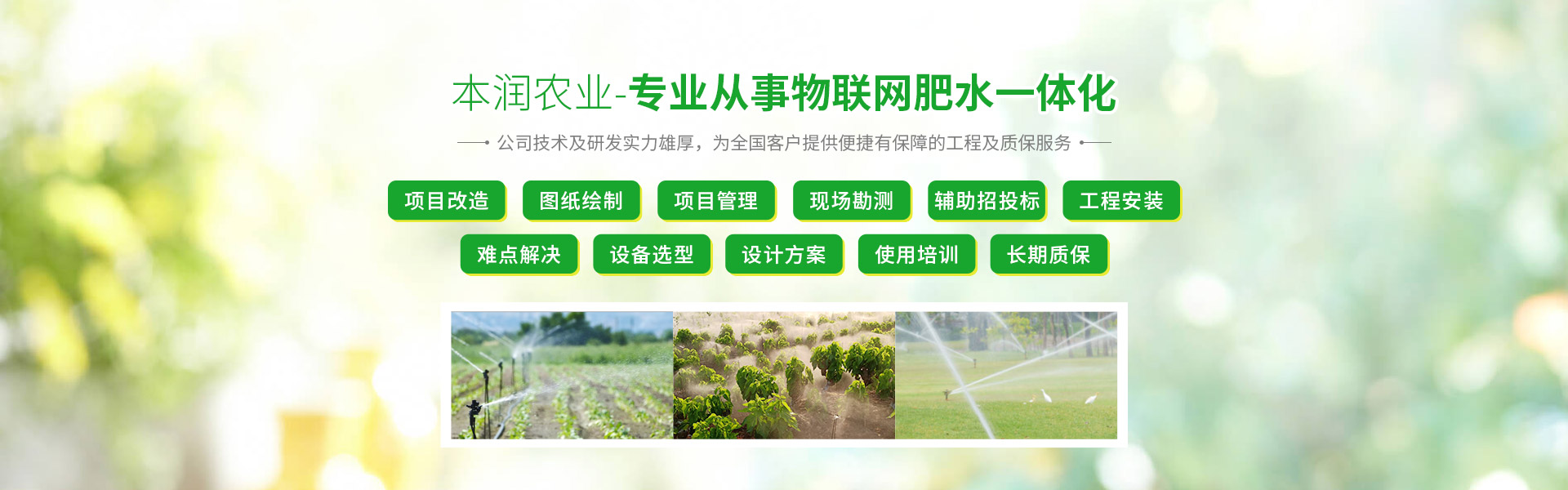 “用心做事,本潤農(nóng)業(yè)”追求無止境,學(xué)習(xí)無止境,創(chuàng)新無止境,本潤農(nóng)業(yè)將為您打造最專業(yè)最有保障的現(xiàn)代灌溉技術(shù)工程